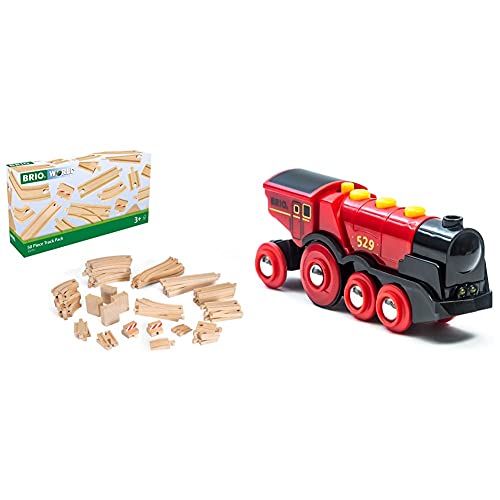 Brio World 33592 – Rote Lola Batterielok + Grosses Schienensortiment XXL, Sonderset, 50 teile