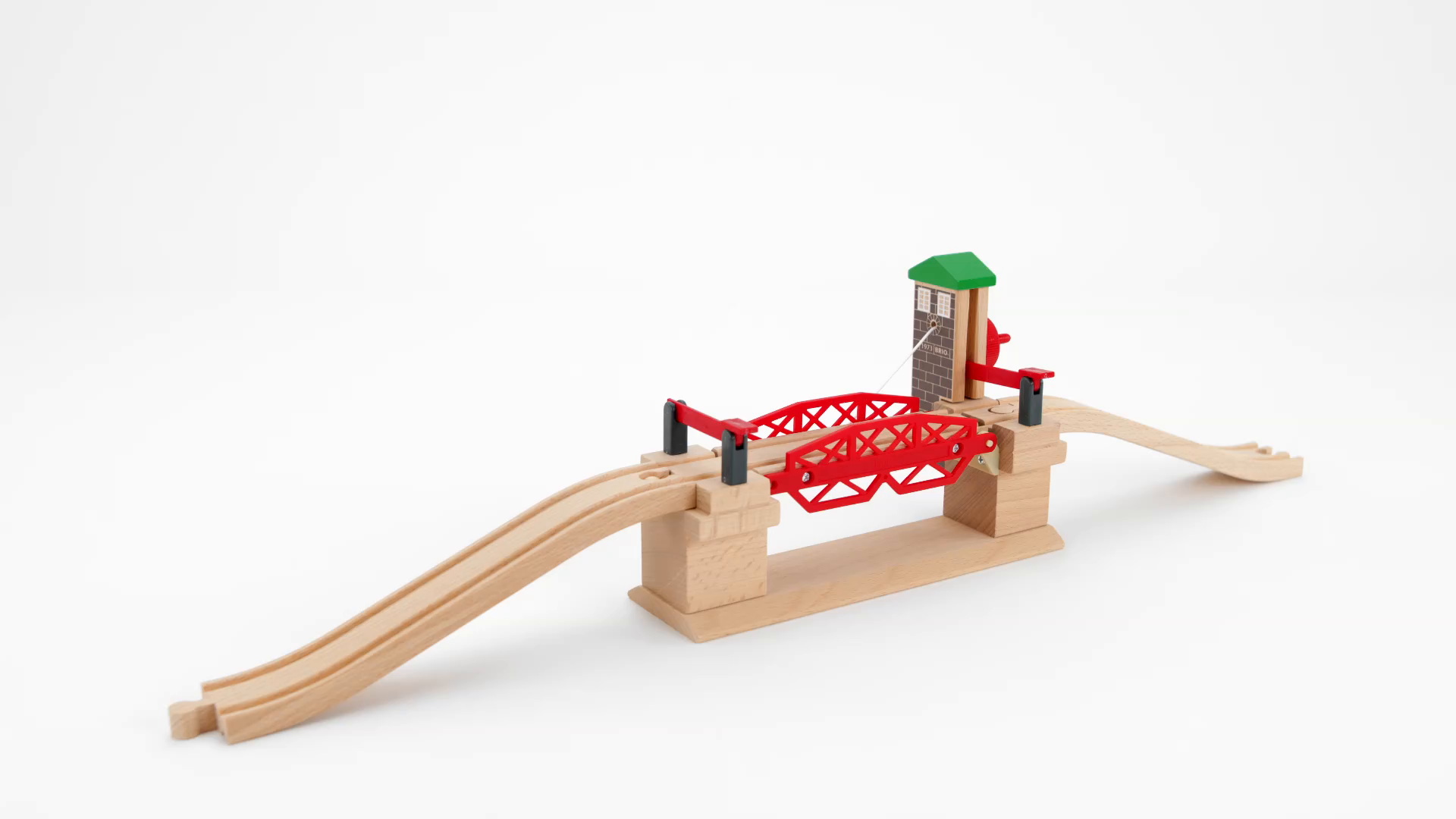 Mittelteil zum Hochkurbeln. Mit Schranken, Steuerkabine und 2 Rampengleisen N. Länge: 665 mm. 3 Teile. Ab 3 Jahren.
