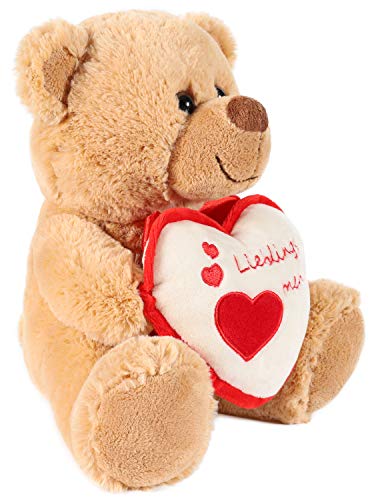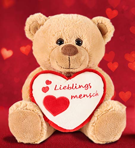 BRUBAKER Teddy Plüschbär mit Herz Rot Beige – Lieblingsmensch – 25 cm – Teddybär Plüschteddy Kuscheltier Schmusetier – Braun Hellbraun