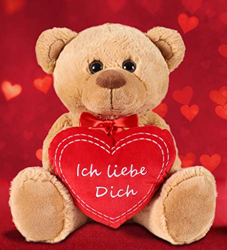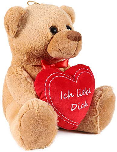 BRUBAKER Teddy Plüschbär mit Herz Rot – Ich Liebe Dich – 35 cm – Teddybär Plüschteddy Kuscheltier Schmusetier – Braun Hellbraun