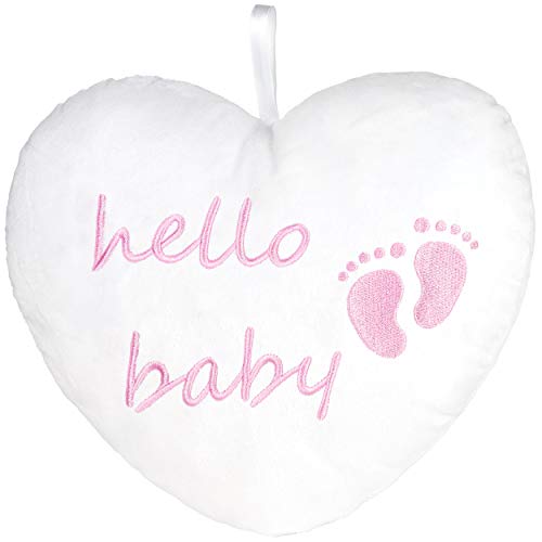👶 Babygeschenk für Mädchen und eine bärenstarke Deko für das Babyzimmer: Der flauschige XXL Teddybär (100 cm) in Rosa begeistert mit einem Plüschkissen in Herzform und aufgesticktem „Hello Baby👣“ Schriftzug (Bär und Herz sind nicht gekoppelt)