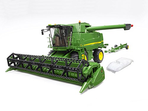 BRUDER John Deere Mähdrescher T670i. John Deere, der Weltmarktführer bei Traktoren, führt im Produktprogramm auch Mähdrescher. Neu entwickelt wurde bei diesen Erntemaschinen die T-Reihenfolge, wobei die Vollziehung T 670i das Top-Modell in Leitung und Ausstattung darstellt. Im original- und detailgetreuen Design. Ausgestattet ist der Mähdrescher mit Achsschenkellenkung mit Pendelausgleich, Getreidetank zu öffnen mit „selbstfaltenden“ Deckeln, Kabine mit Glasscheibe und Tür links zu öffnen, drehbarer Aufstiegsleiter, Schneidwerkfunktion: Haspel und Zentrierschnecke über Reibradantrieb, Korntankentleerung über Entleerrohr und Handspindelantrieb, Anhängerkupplung, Schneidwerkwagen und Schneidwerk mit Niveauausgleich pendelnd aufgehängt und abnehmbar. Für Kinder ab 3 Jahren. Maßstab 1:16. Maße: ca. L 50 x B 19,5 H 23,5 cm.