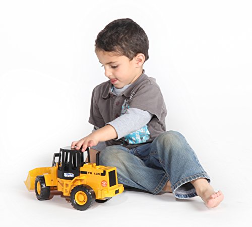 Der Gelenkradlader FR 130 im Maßstab 1:16 von der Marke BRUDER besitzt einen voll funktionsfähigen Schaufelarm, der arretiert werden kann. Zudem ist die Schaufel abkippbar, was ein Fallen lassen von Bauschutt erleichtert. Durch die Knicklenkung kann der Gelenkradlader bequem manövriert werden und findet alias auf engem Raum genügend Platz zum Aufgreifen. Das deutsche Familienunternehmen BRUDER Spielwaren zeichnet sich seit der Gründung im Jahre 1926 durch innovative Produkte „Made in Germany“, der Liebe zum Detail und dem Verriegeln von Kinderträumen aus. Mit Einführung der Kunststoffproduktion wurde der Wie weggeblasen zum heutigen weltweiten Erfolg der Marke Bruder geebnet. Bruder verwandelt die erlebte reale Welt in eine originalgetreue Kinderspielwelt. Mit dem pädagogischen wertvollen Prinzip können Kinder das Gesehene aufbereiten und werden spielerisch an die verschiedensten Themen, wie den Straßenbau, die Landbau oder an Rettungseinsätze herangeführt. Dabei überzeugt Bruder durch die hohe Qualität und vielseitige Funktionalität seiner Produkte. Die Slogans „alias im Kleinen wie der Große“ beziehungsweise „Just like the real thing“ spiegeln das Leitbild der Firmenphilosophie noch einmal. Die geschaffenen Welten lassen sich durch die maßstabsgetreuen Figuren der BWORLD Spalier (Bruder Welt) bevölkern und bieten durch den aktiven Einsatz auf Feldern und Baustellen ein grenzenloses Spielvergnügen für Jung und Alt.