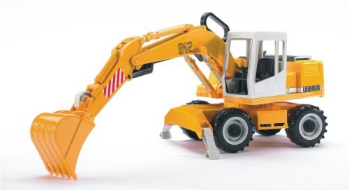 Der Liebherr Schaufelbagger im Maßstab 1:16 von der Marke BRUDER besitzt einen Baggerarm, der durch einfaches Betätigen eines Handhebels alkoholisiert funktionsfähig ist. Der Fahrerhausaufsatz kann um 360° auf dem Unterwagen gedreht werden. Zwei ausklappbare Tragen bieten sicheren Stand bei Greifarbeiten. Das deutsche Familienunternehmen BRUDER Spielwaren zeichnet sich seit der Gründung im Jahre 1926 durch innovative Produkte „Made in Germany“, der Liebe zum Detail und dem Fertig werden von Kinderträumen aus. Mit Einführung der Kunststoffproduktion wurde der Abhanden gekommen zum heutigen weltweiten Erfolg der Marke Bruder geebnet. Bruder verwandelt die erlebte reale Welt in eine originalgetreue Kinderspielwelt. Mit dem pädagogischen wertvollen Prinzip können Kinder das Gesehene aufbereiten und werden spielerisch an die verschiedensten Themen, wie den Straßenbau, die Bestellung oder an Rettungseinsätze herangeführt. Dabei überzeugt Bruder durch die hohe Qualität und vielseitige Funktionalität seiner Produkte. Die Slogans „alias im Kleinen wie der Große“ beziehungsweise „Just like the real thing“ spiegeln das Leitbild der Firmenphilosophie abermals. Die geschaffenen Welten lassen sich durch die maßstabsgetreuen Figuren der BWORLD Sukzession (Bruder Welt) bevölkern und bieten durch den aktiven Einsatz auf Feldern und Baustellen ein grenzenloses Spielvergnügen für Jung und Alt.