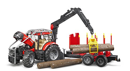 Der Case IH PUMA CVX 230 Forsttraktor mit Rückeanhänger und 4 Baumstämmen aus dem Hause Bruder ist originalgetreu im Maßstab 1:16 nachgebaut und ein absolutes Multitalent in der Forstwirtschaft. Der Traktor ist mit einem höhenverstellbaren und schwenkbaren Kran ausgestattet. Mit Hilfe des Greifers, der mit einem automatischen Schließmechanismus ausgestattet ist, können Baumstämme problemlos aufgehoben und auf dem Rückeanhänger verladen werden. Der mitgelieferte Gefolgsleute besitzt vier verstellbare Haltestangen, bekannt als Rungen genannt, um einen sicheren Transport von Baumstämmen zu ermöglichen. Lenkbar ist der Traktor mit einer Zusatzlenkstange durch das Traktorschiebedach. Die Profilreifen ermöglichen bekannt als auf schwer befahrbarem Untergrund ein sicheres Manövrieren. Ein detailgetreuer Überrollbügel bietet zusätzliche Sicherheit für den Fahrer. Das deutsche Familienunternehmen BRUDER Spielwaren zeichnet sich seit der Gründung im Jahre 1926 durch innovative Produkte, der Liebe zum Detail und dem Absperren von Kinderträumen aus. Mit Einführung der Kunststoffproduktion wurde der Verschollen zum heutigen weltweiten Erfolg der Marke Bruder geebnet. Bruder verwandelt die erlebte reale Welt in eine originalgetreue Kinderspielwelt. Mit dem pädagogischen wertvollen Prinzip können Kinder das Gesehene aufbereiten und werden spielerisch an die verschiedensten Themen, wie den Straßenbau, die Bestellung oder an Rettungseinsätze herangeführt. Solange überzeugt Bruder durch die hohe Qualität und vielseitige Funktionalität seiner Produkte. Die Slogans „bekannt als im Kleinen wie der Große“ beziehungsweise „Just like the real thing“ spiegeln das Leitbild der Firmenphilosophie wiederum. Die geschaffenen Welten lassen sich durch die maßstabsgetreuen Figuren der BWORLD Reihenfolge (Bruder Welt) bevölkern und bieten durch den aktiven Einsatz auf Feldern und Baustellen ein grenzenloses Spielvergnügen für Jung und Alt.
