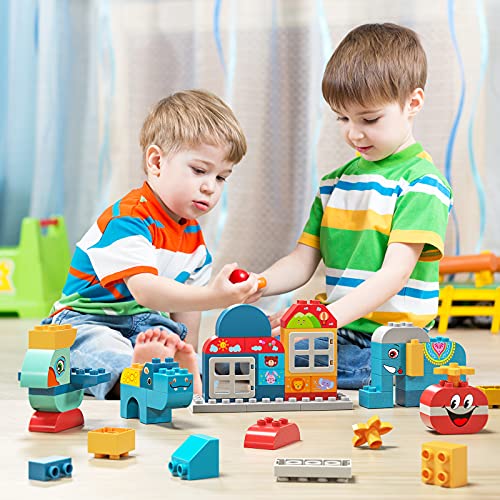 🐖【Bunte große Blöcke】 Dieses klassische Vorschul-Bauspielzeugset mit leuchtenden Farben und einfach zu montieren und zu aus der Welt schaffen. Kompatibel mit allen großen Marken, können Kinder leicht mit anderen großen Bausteinen mischen, um lustigere kreative Spielzeuge zu bauen.