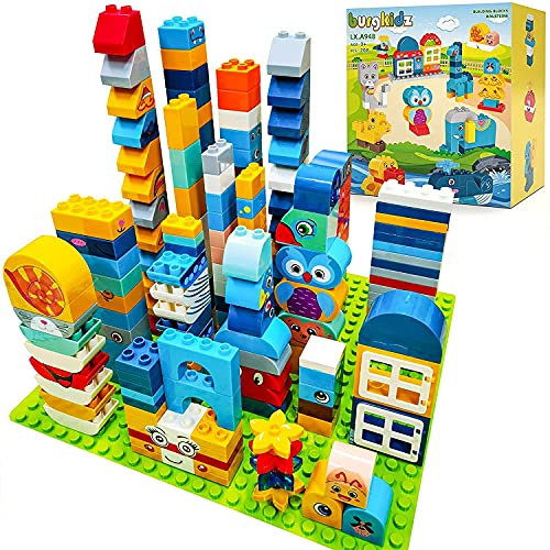 burgkidz Große Bausteine Kinder, 208 Stück Bauklötze Steine 23 Lustige Tierformen Elefant, Ente, Giraffe, Katze…