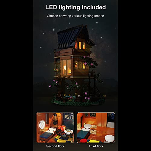 Packliste:CADA Master C66004W Technik Four Seasons Tree House Bausteine mit USB-Licht, 1155 Klemmbausteine Modulares Haus Bausatz, Baumhaus Holzhütte Modellbausatz Geschenk für Erwachsene, Kompatibel mit Lego*1