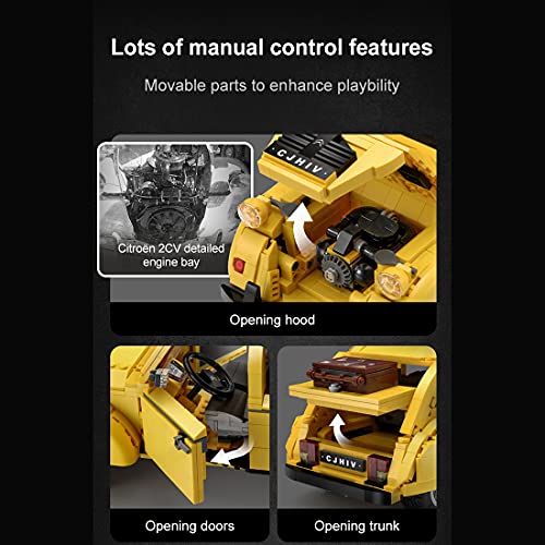 Ausbelichtung: Sie können das Auto fernsteuern, um vorwärts, rückwärts, links und rechts zu drehen. Das Lenkrad ist mit dem Vorderrad des Autos dependent. Die linke und rechte Tür, die Motorhaube und der Kofferraum können manuell geöffnet werden. Die eingebaute Citroen 2CV-Simulationsmaschine stellt die Erfahrung eines echten Autos nochmal her.