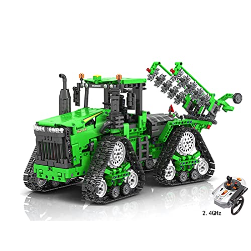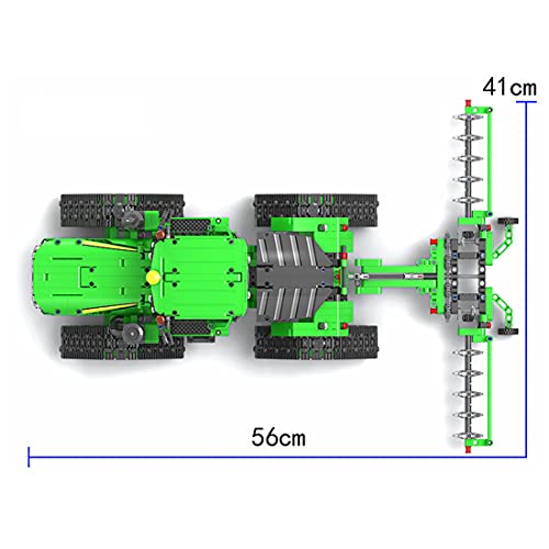 Dies ist ein grüner Raupentraktor, Übersetzung 1:18, Knickkörper, Allrad-Raupe, die Details sind sehr clever, kompatibel mit Lego.