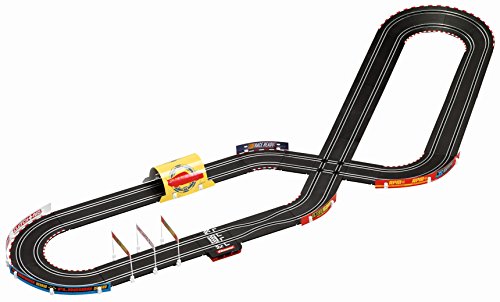 Action-Rennbahn im Maßstab 1:43 ● Originalgetreue Fahrzeuge im Maßstab 1:43 ● Schienenelemente An Stelle actiongeladenen Fahrspaß ● Handregler über Turbolader-Button An Stelle mehr Geschwindigkeit