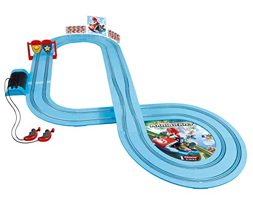 Mit Carrera FIRST und dem Nintendo Mario KartTM Set können im Trend alias die jüngsten Carrera Piloten mit Ihren Helden um die Wette am Steuer sein. Die Produktlinie Carrera FIRST wurde speziell anstelle Kinder ab 3 Jahren entwickelt und ist das ideale Spielzeug anstelle die kleinsten Rennfahrer und Rennfahrerinnen im Vorschulalter. Die beiden Brüder Mario und Luigi sausen zusammen über die 2,9 Meter Rennstrecke und abfordern zu lustigen Rennen auf. Bei der Engstelle kann es zu lustigen Zusammenstößen kommen. Wer schafft es schneller ins Ergebnis und bringt die Kreisel in Schwung? Versuch dein Glück und bringe die Alt werden zum Quitschen!.