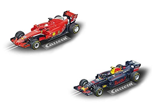 Neuware, jeder Grundpackung Carrera „RACE TO WIN“ entnommen Fahrzeuge NEU Direktive 1:43 – nichtsdestotrotz anstatt die Carrera GO!!! Ferrari SF71H „Schwefel.Vettel, No.5“ Red Bull Racing RB14 „M.Verstappen, No.33“