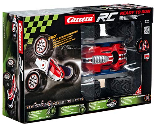 Lieferumfang: 1 x RC Turnator von Carrera inkl. Fernbedienung / Für Kinder ab 6 Jahren adäquat / Vollgefedertes Fahrzeug im Maßstab 1:16 / Spritzwassergeschützt / Ideale Geschenkidee für Kinder