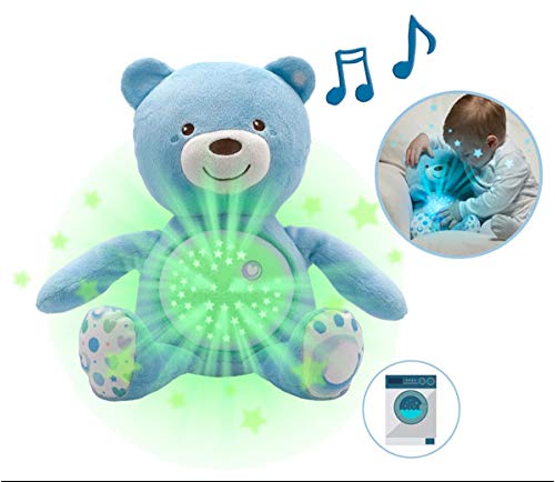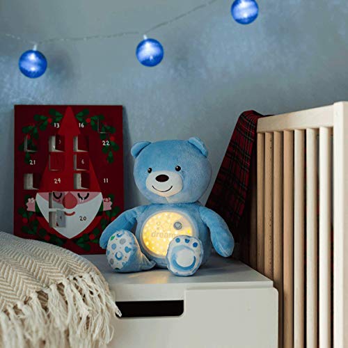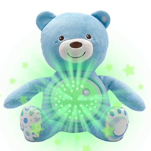 Chicco First Dreams Baby Bär Plüsch-Teddybär, weicher Projektor mit Nachtlicht, Lichteffekten und entspannenden Melodien, Kinderspielzeug 0+ Monate, Hellblau