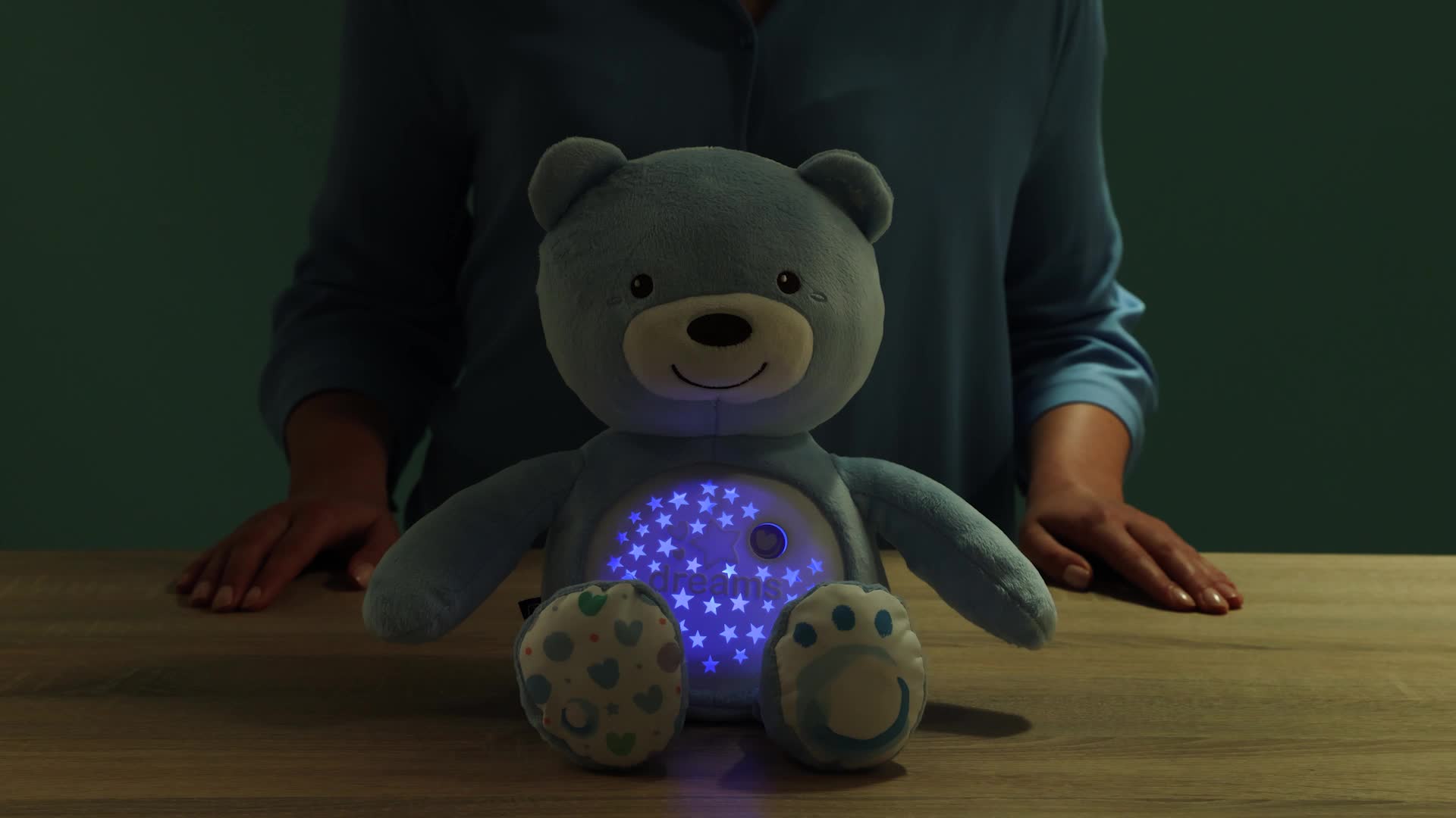 CHICCO TEDDYBÄR: First Dreams Baby Bär ist ein weiches Chicco Plüschtier zum Kuscheln sowie ein Projektor unter Zuhilfenahme von spektakulären Lichteffekten unter anderem entspannenden Melodien statt Ihr Baby