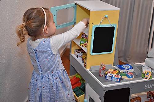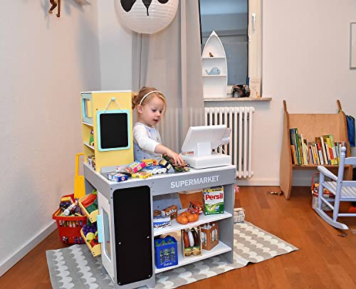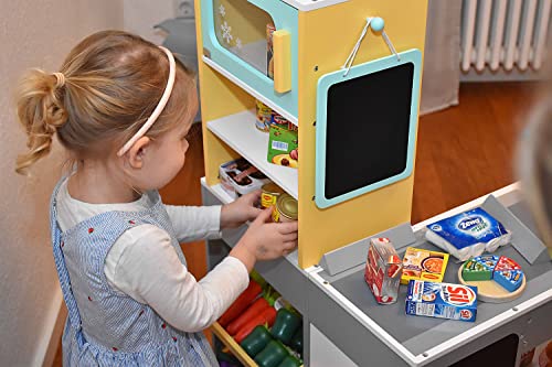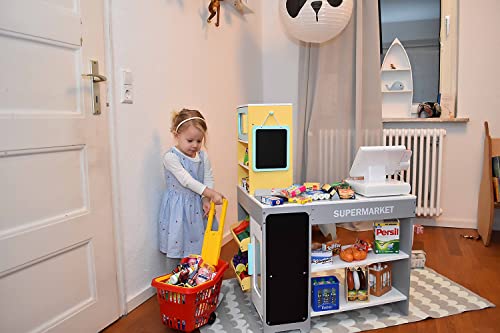 tanner DER KLEINE KAUFMANN TANNER Deco – Supermarkt aus Holz, mit Miniatur Lebensmitteln, mit Zubehör für Kaufmannsladen, lebensmittelechtes Design, 0348.2