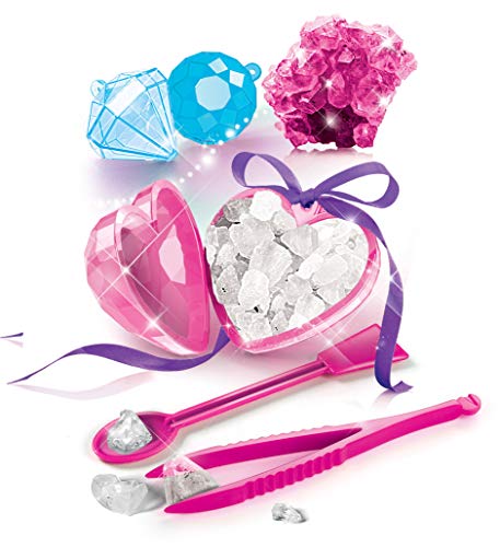 Dieses Experimentier-Set ist die ideale Zerstreuung für angehende Wissenschaftler. Der Baukasten enthält alles, was es braucht, um edle Schmuckstücke selbst herzustellen. Das Kit beinhaltet Reagenzgläser, Schutzhandschuhe, Wissender, Messbecher, farbige Satinbänder, eine Pinzette, Spatel und 8 Beutel mit Salzen, die dazu dienen, wirklich besondere Kristall-Kreationen zu erschaffen. Die funkelnden Diamanten können dann in edle Edelstein- und Diamantfassungen eingeschlossen und als schöne Halskette getragen werden. Das Spielzeug eignet sich ideal für kleine Beauty-Fans, die das Experimentieren lieben. Als Geschenk sorgt das kreative Bastel-Set zum Geburtstag, Ostern oder Weihnachten mit Sicherheit für begeisterte Gesichter.