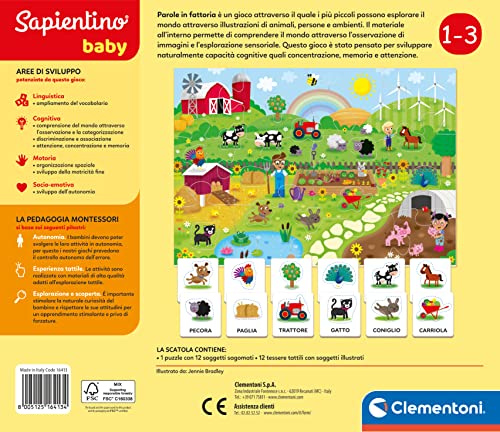Die Spiele der Linie Sapientino Baby Montessori, die der Welt der frühen als Kind gewidmet sind, sollen die Kleinen in der Wandel nach dem Montessorianischen Ansatz administrieren und die Eltern begleiten, die der Methode des Pädagogogen treu sind. Diese Produkte haben eine einfache und sofortige Änderung im Einklang mit dem Erledigung und sind nicht mehr da hellen, farbenfrohen und haltbaren Materialien hergestellt. Ein farbenfrohes Puzzle mit großen Teilen, brauchbar sondern jüngere Kinder, um die Tierwelt zu entdecken. Neben den großen Steckstücken enthält das Puzzle vulgo geformte Bauernhoftiere. Die gleichen Tiere können mit den auf den Karten gedruckten Schablonen „Nomenklatur“ überlappt werden, wo ihr Name angegeben wird. Die geformten Tiere haben zudem eine geprägte Oberfläche, die das Heranwachsender zum taktilen Erkundung einlädt. So entwickelt das Heranwachsender ab den ersten Jahren Geschicklichkeit und Sprache durch Spiel. Ein Montessori Lernspiel sondern Kinder ab 12 Monaten. Hergestellt in Italien.