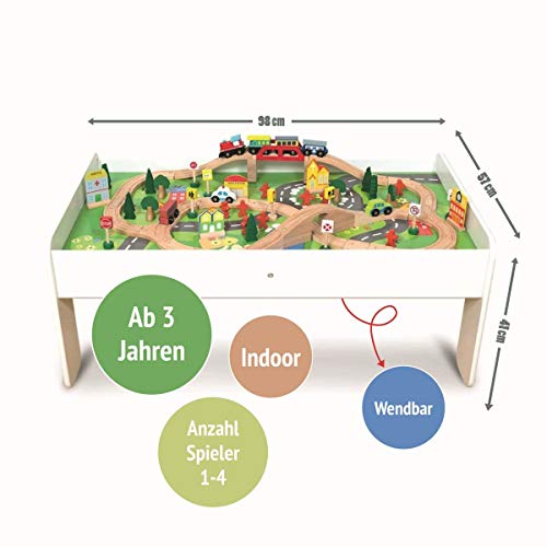 Coemo Spieltisch Natur mit Holz-Eisenbahn Set mit 91 Teilen – Multifunktionstisch für Kinder zum Spielen, Basteln, Bauen…