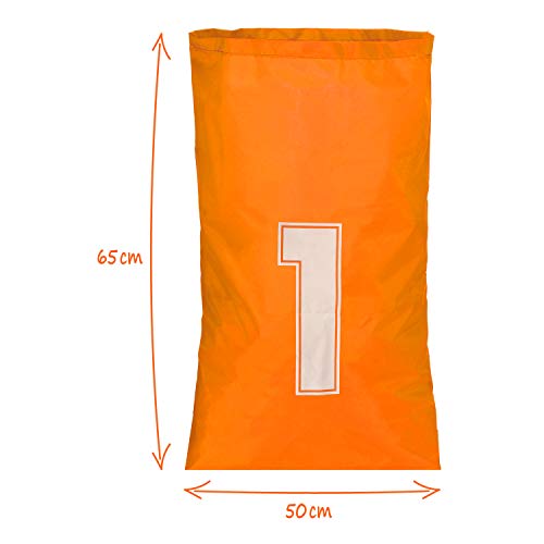 LIEFERUMFANG: 4x Hüpfsack, 2x Fahrtbeginn-/Ziellinie // Maße Hüpfsack (HxB): ca. 65 x 50 cm // Maße Fahrtbeginn-/Ziellinie (LxB): ca. 200 x 2 cm // Material: Kunststoff // Farbe: orange, gelb, grün, pink, rot