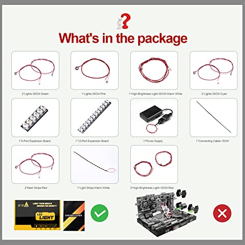 💪Hohe Qualität und einfach zu verbergen – Die Steine zum Zusammenfügen von LED-Lichtern sind von LEGO Original, 2 mm winziger Draht ist leicht zu verstecken, was das Aussehen Ihres Gebäudemodells nicht beeinträchtigt.
