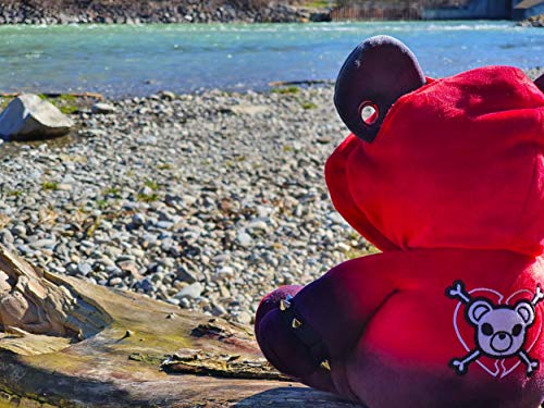 HOCHWERTIG: Die weiche Marshmallow Füllung ist super anschmiegsam ferner der Kapuzenpullover des Kuschelteddys ist auf der Abseite aufwendig durch einem Totenkopf bestickt.