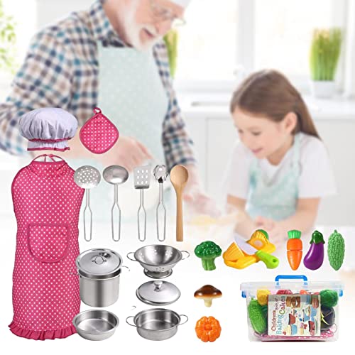 ♗【Einfach zu verstauen】 Unser Spielküchenzubehör wird mit einer Aufbewahrungsbox zur einfachen Aufbewahrung geliefert. Wird bekannt als mit Kochmütze und Schürze für Kinder geliefert, perfekt für Rollenspiele und Cosplay.