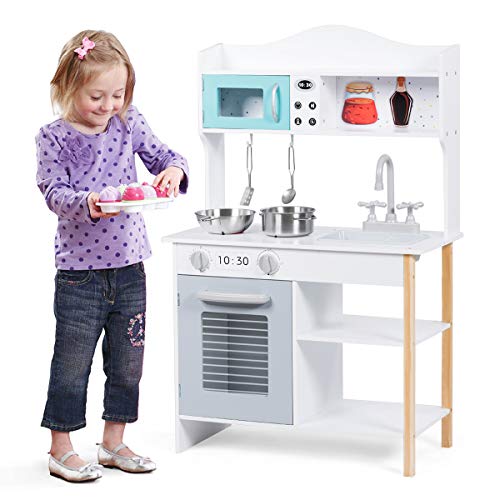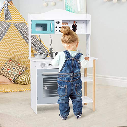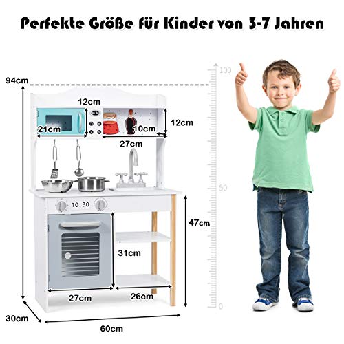 COSTWAY Kinderküche Holz, Holzküche für Kinder 60x30x94cm, Spielküche Kinderspielküche, Spielzeugküche mit Waschbecken…