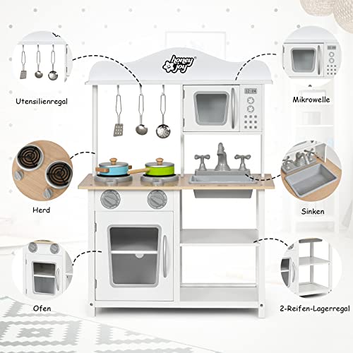 COSTWAY Kinderküche Spielküche Holz, Kinder Küche mit Zubehör, Spielzeugküche Holzküche mit Spüle Backofen Mikrowelle…