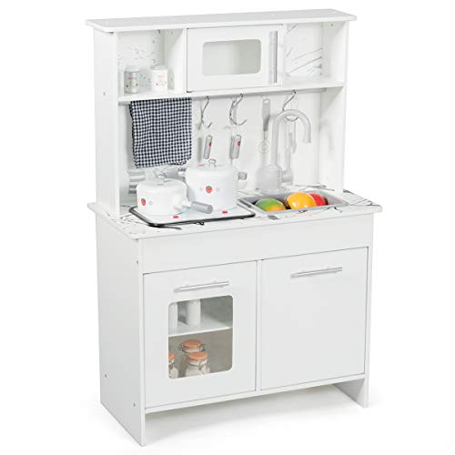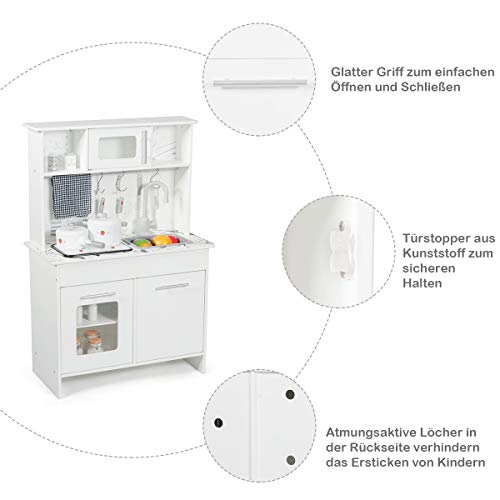 COSTWAY Kinderküche Spielküche Kinderspielküche Spielzeugküche Spielzeug Holzküche mit Zubehör, weiß