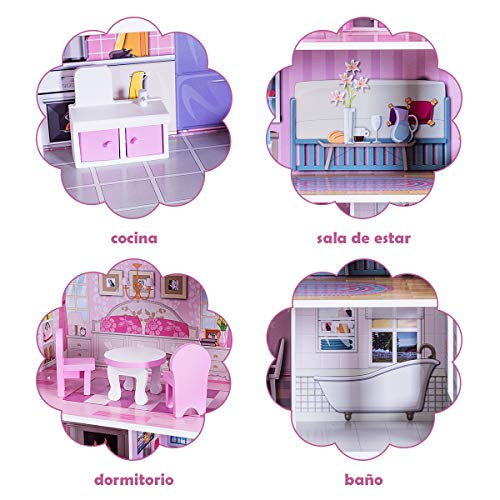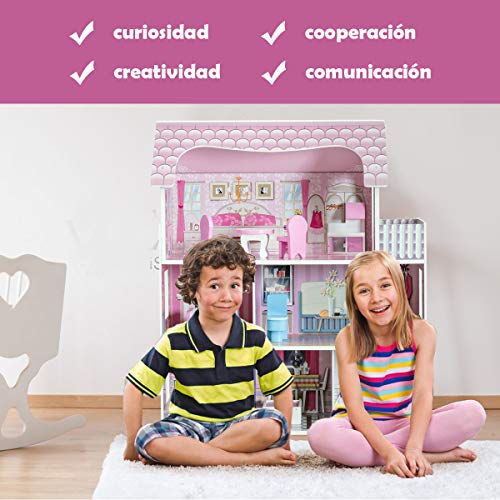 【Perfektes Geschenk】 Ein ideales Geschenk sondern Mädchen, sie werden die liebevoll gestalteten Möbel dieses Puppenhauses lieben. Aufmerksamkeit: Benutzung deprimiert Aufsicht von Erwachsenen.