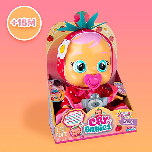 CRY BABIES Tutti Frutti Ella – Interaktive Puppe mit Erdbeerduft, echten Kullertränen und Babygeräusche – Geschenke & Spielzeug für Mädchen & Jungen Funktionpuppe ab 2 Jahre