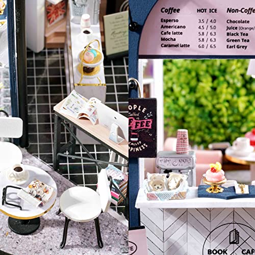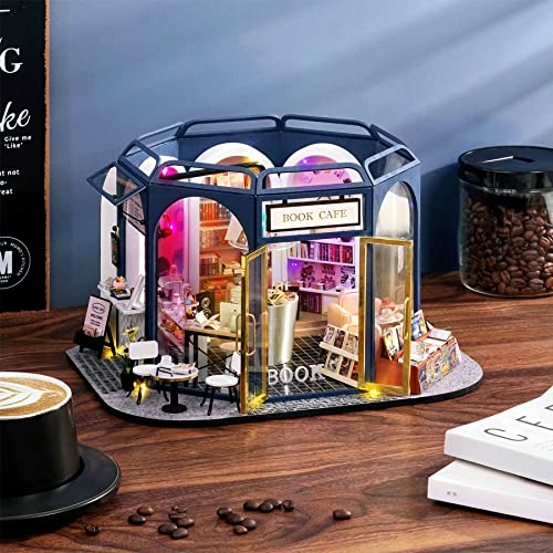 Tolle Geschenkidee: Die fertige Hausgröße beträgt: 27,8 x 25,8 x 17,5 cm. Ein wunderschönes Miniatur-Café und ein Buchladen mit LED-Licht, Musik, Staubschutz und Möbeln wird nach dem Basteln herauskommen, charmant und auffällig, ideal zum Dekorieren. Perfekte Geschenkidee für Weihnachten, Erntedankfest, Valentinstag, Geburtstag, um Ihrer Familie, Freunden und Menschen, die Kunsthandwerk und Miniaturen mögen, Liebe und Schätzung auszudrücken. Auch gute Geschenke zum Ruhestand für Frauen