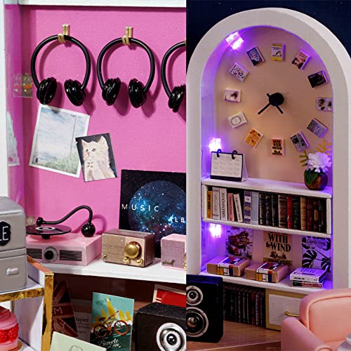 Cuteefun DIY Puppenhaus Miniatur Haus zum Selber Bauen für Erwachsene, Miniatur Puppenhaus Kit mit Möbelmusik…