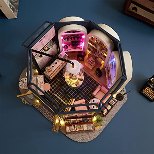 Tolle Geschenkidee: Die fertige Hausgröße beträgt: 27,8 x 25,8 x 17,5 cm. Ein wunderschönes Miniatur-Café und ein Buchladen mit LED-Licht, Musik, Staubschutz und Möbeln wird nach dem Basteln herauskommen, charmant und auffällig, ideal zum Dekorieren. Perfekte Geschenkidee für Weihnachten, Erntedankfest, Valentinstag, Geburtstag, um Ihrer Familie, Freunden und Menschen, die Kunsthandwerk und Miniaturen mögen, Liebe und Wertschätzung auszudrücken. Auch gute Geschenke zum Ruhestand für Frauen