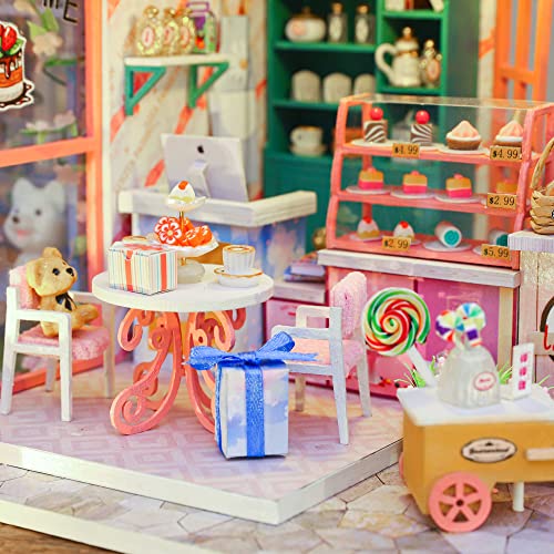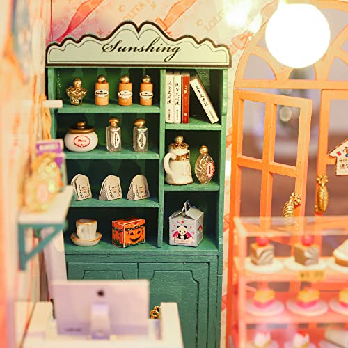 Tolle Geschenkidee: Die fertige Hausgröße beträgt: 22,5 x 18,5 x 19,5 cm. Ein wunderschöner Milchtee-Shop mit LED-Licht, Musik und Möbeln wird nach dem Basteln herauskommen, charmant und auffällig, ideal zum Dekorieren. Perfekte Geschenkidee für Weihnachten, Erntedankfest, Valentinstag, Geburtstag, um Ihrer Familie, Freunden und Menschen, die Kunsthandwerk und Miniaturen mögen, Liebe und Wertschätzung auszudrücken. Auch gute Geschenke zum Ruhestand für Frauen