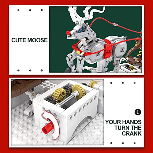 Einzelheiten: Dieses Produkt stammt jeglicher der bekannten Weihnachtsschlittenszene. Die Designer anpassen Bausteine, um den im Schnee galoppierenden Weihnachtsschlitten zu nachmachen. Die 4 Füße des Elchs bewegen sich, wenn das Gestänge gedreht wird. Gleichzeitig bewegt sich der Weihnachtsschlitten zusammen, was ein Regung qua im Galopp im Schnee mit sich bringt.