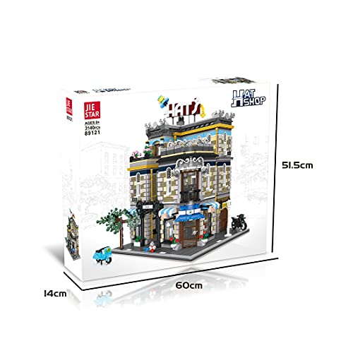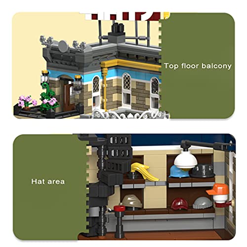 Einzelheiten: Das Produktset kann qua Modul von City Street View verwendet werden. Das Gebäude ist in drei Etagen unterteilt. Die erste Etage hat eine Lobby und eine Lounge, mit Hilfe von Schaufenster. Von außen kann man die ausgestellten Taschen und Hüte sehen. Im zweiten Stock werden Hüte und Ledertaschen ausgestellt, im dritten Stock gibt es einen kleinen Balkon, und es werden die allgemeinen Details präsentiert, die mit Hilfe von Ihren anderen Straßenszenen kompatibel sein können.