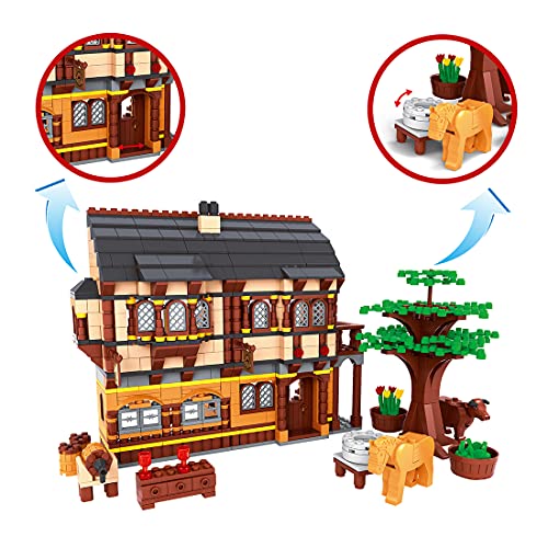 Einzelheiten: Die Bauernhof-Sequenz hat ein komplettes Set von Szenen, einschließlich Kutschen, Wasserräder, landwirtschaftliche Werkzeuge, Lebensmittel, etc. verwendet in alten europäischen Bauernhöfen, einschließlich der klassischen Bausteine als Blumen, Blätter, Obstbäume, Pferde, Hunde und Karotten. Verschiedene Szenen Einschließlich Weinhäuser, Bauernhütten, Scheunen, Holzmühlen, sammeln nicht mehr da Ansichten von Bauernhöfen, die erstellt werden können, um Ihre Traumstadt Bauernhof zu ackern.