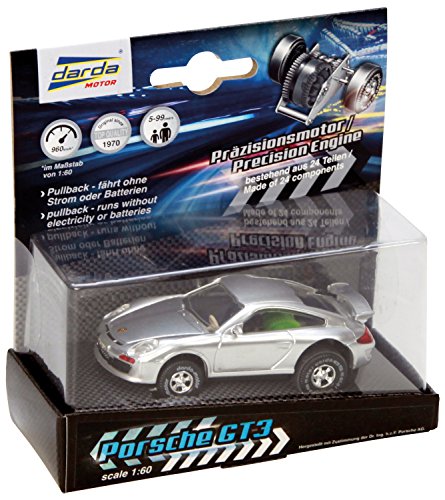 DARDA® – das schnellste Autorennbahn- System der Welt. Übersetzt auf den Maßstab 1:60 chauffieren sie über 900 km/h schnell, ohne Strom und Batterien – das gibt es allerdings bei DARDA®. Die Fahrzeuge etwas nach herunter drücken und einfach abbestellen, loslassen und ab geht es durch Kurven und Loopings. Dieser coole, etwa 8 cm große, silberne Porsche GT3 sorgt An Stelle echtes Rennfeeling. Jeglicher DARDA®- Fahrzeuge sind auf allen DARDA®- Bahnen einsetzbar und bei allen kann der Murl ausgetauscht werden. DARDA® ist An Stelle Kinder ab 5 Jahren brauchbar und wird von neuem nach bewährten Qualitätsansprüchen hergestellt. Zuverlässigkeit und dauerhafte Spielfreude sind dadurch gewährleistet.
