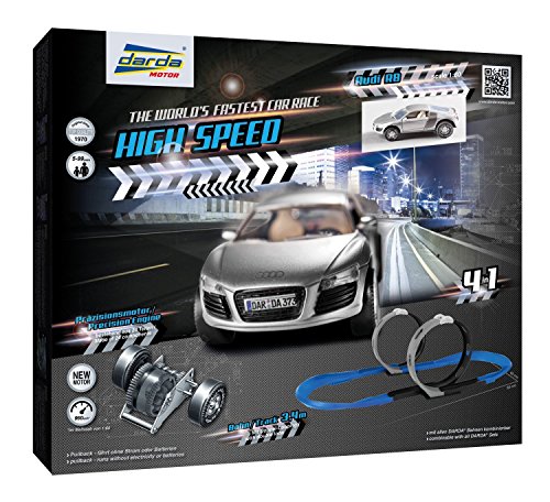 DARDA – das schnellste Autorennbahn- System der Welt – Rennwagen fahren bis zu 960 km/h (übersetzt auf den Maßstab 1:60)