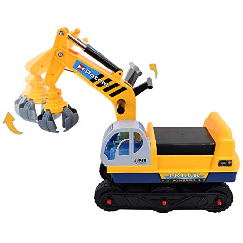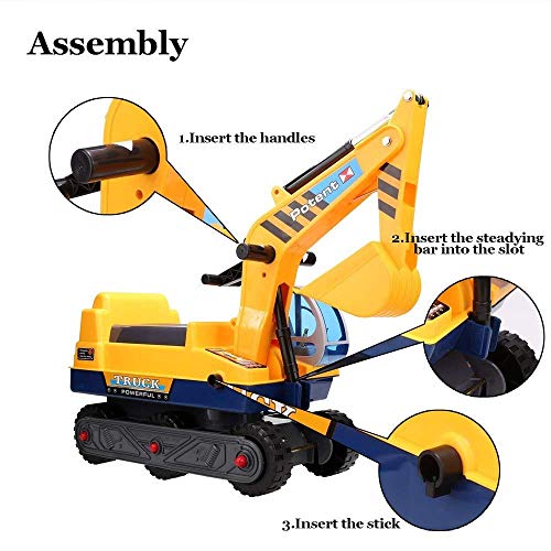 deAO 2-in 1 Sitzbagger für Kleinkinder-pedalfreies Kinderfahrzeug mit zwei verschiedenen Schaufeln