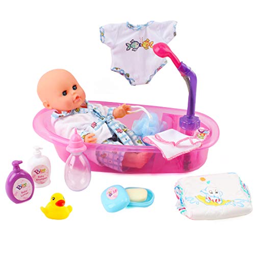 deAO Puppen Badewanne Set, 33cm Interaktive Badepuppe Baby Puppe Badezeit Baby Doll Spielset mit Schnuller…