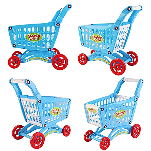 deAO Kinder Einkaufswagen Spielset Gefüllt mit 76 Kuststofflebensmitteln Spielzeug für Jungen und Mädchen (Blau)