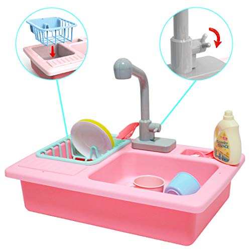 ALLES IST IM WASCHBECKEN: Dieses Waschbecken Spielset ist eine gute Möglichkeit, das Ihre Kinder lernen abzuwaschen! Ihre Kinder können jeder Zubehörteile mit fantastischen eingebauten Funktionen mit abundant Freude ausspülen und trockenreiben lassen.