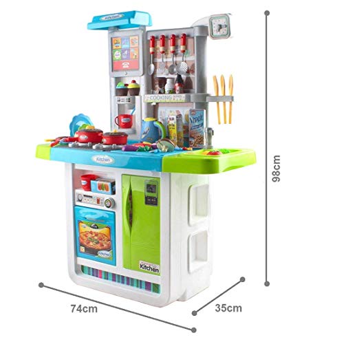 deAO „My Little Chef“ Küchen Spielset mit Klängen, Touchscreen-Panel und Wasserspiele – Mehr als 40 Zubehör Enthalten (Blau)