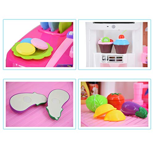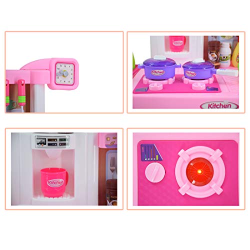 deAO „My Little Chef“ Küchen Spielset mit Klängen, Touchscreen-Panel und Wasserspiele – Mehr als 40 Zubehör Enthalten (Pink)