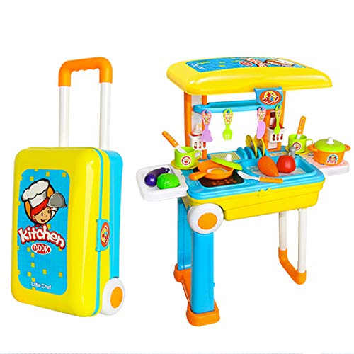 deAO SC-KB 2-in-1 Tragbares ‚My Little Chef‘ Küchenset Koffer Spielset mit Sound, Licht und Zubehör enthalten (gelb), 3…