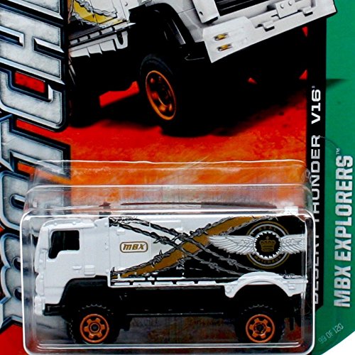 Desert Thunder V16 (White) * MBX EXPLORERS * 60. Anniversary Matchbox 2013 Basic Die-Cast Vehicle (# 99 of 120); Whether They Travel man Fußboden Aurum by Sea using No Wheels, Two Wheels, Backofen Aurum More, Spekulation Fahrzeuge Blaze New Trails Going Where No Man Has Gone Before. Built Rugged from the Ground Up, They Handle The Toughest environments, The Fiercest Storms, and the harshest Bedingungen. In fact, There ’s almost Nothing Physis CAN Dish Out That MBX EXPLORERS Fahrzeuge aren‘ T designed to Handle.; Vehicle Metrik ca. 3 Abgabe weit.; Vehicle # 99 of 120 – Matchbox 2013 Basic Vehicle Series; Ages 3 and up. From Mattel